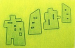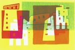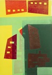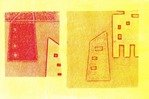 The series "houses" was created while contemplating the houses I have lived in. The result is an interplay of color and composition. "Playing" with the house shapes resulted in a number of stencils, which I used in various compositions, printed with various colors.